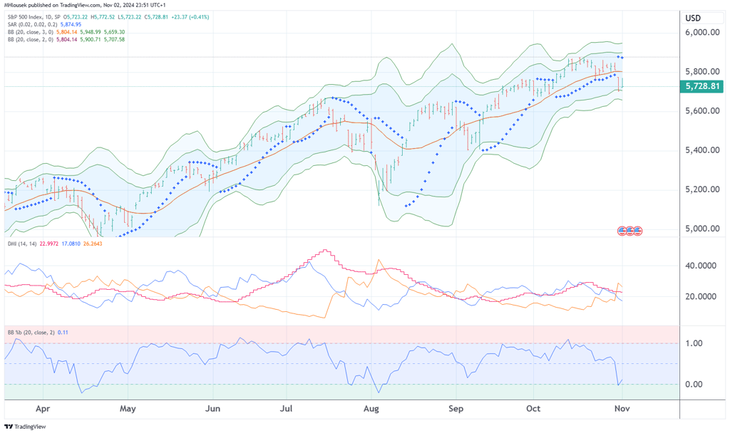 Bollinger-Bänder %B-Indikator - Ebenfalls im unteren Bereich des Charts zu sehen. Er misst, wo der Preis relativ zu den oberen und unteren Bollinger-Bändern liegt und zeigt Überkauf- oder Überverkauf-Bedingungen an.